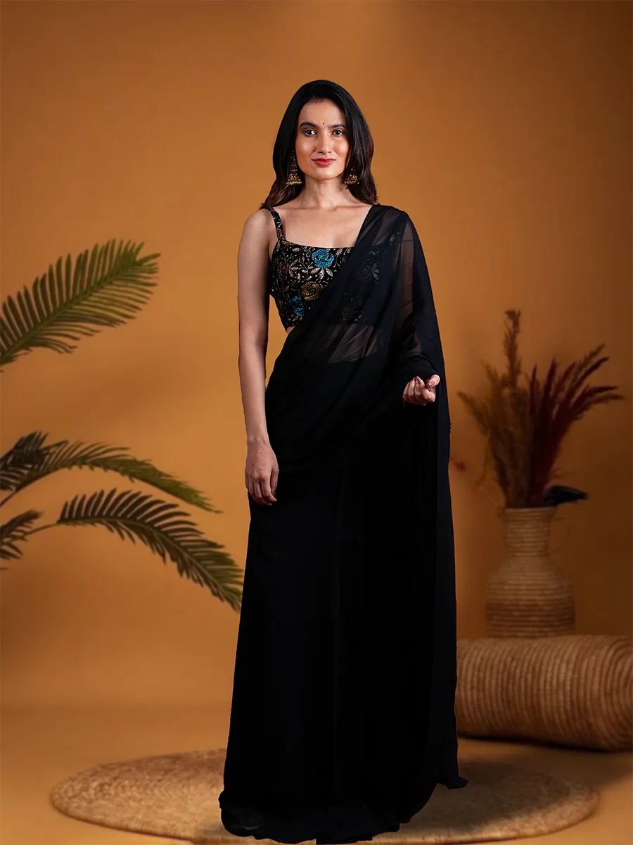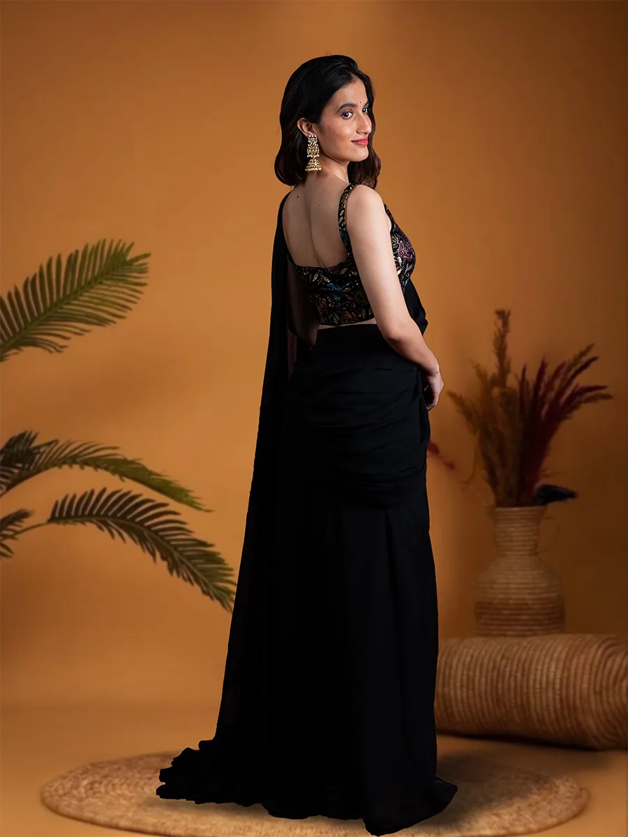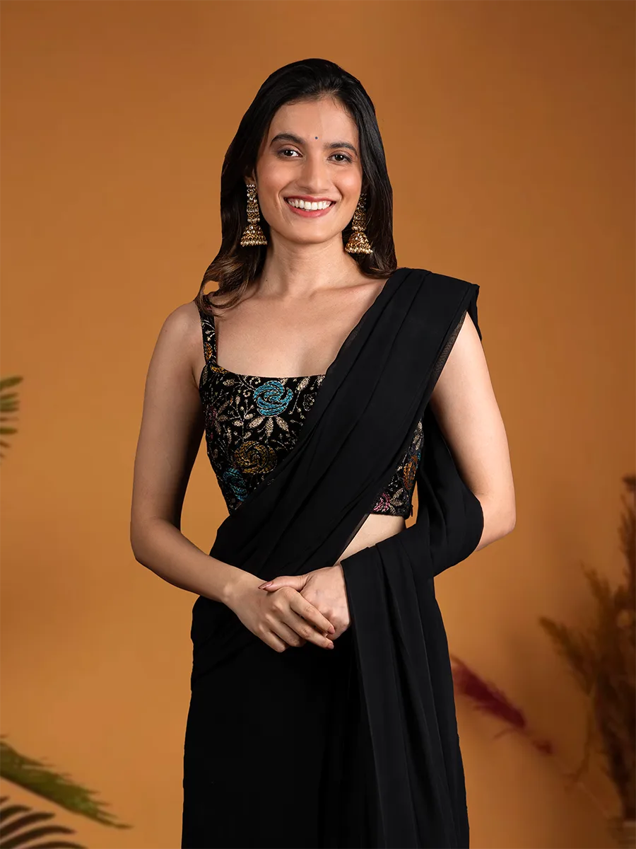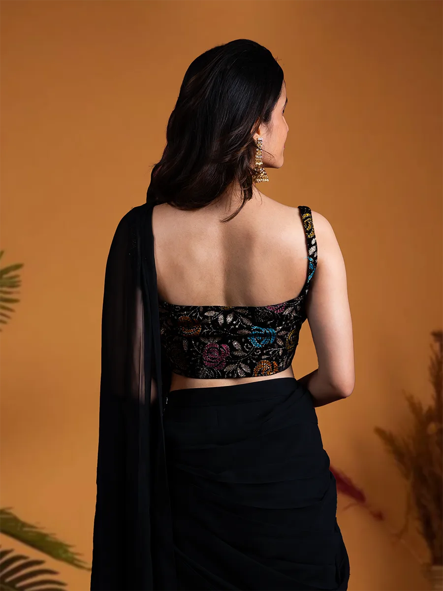 Elegant Black Saree with Velvet Blouse