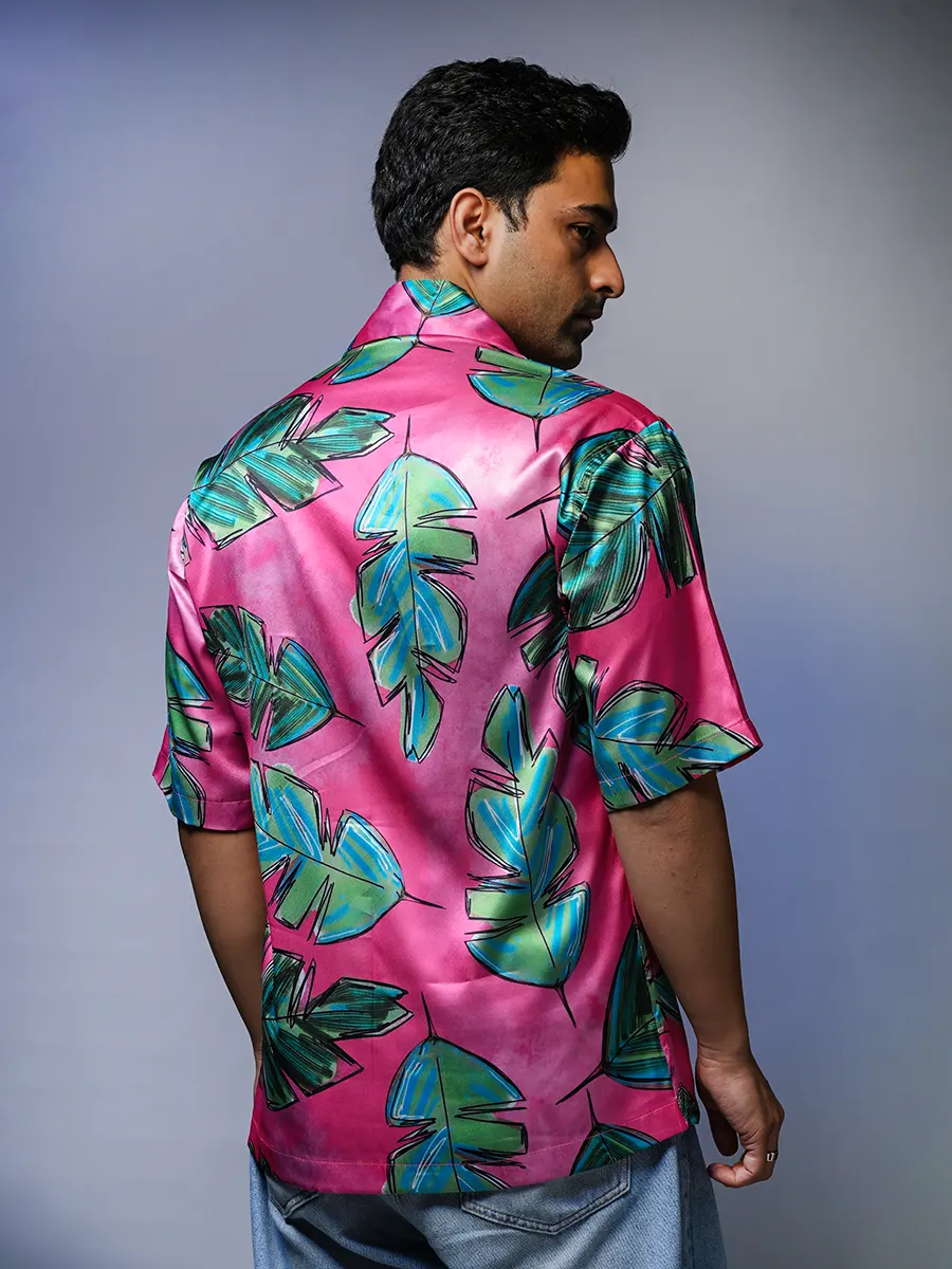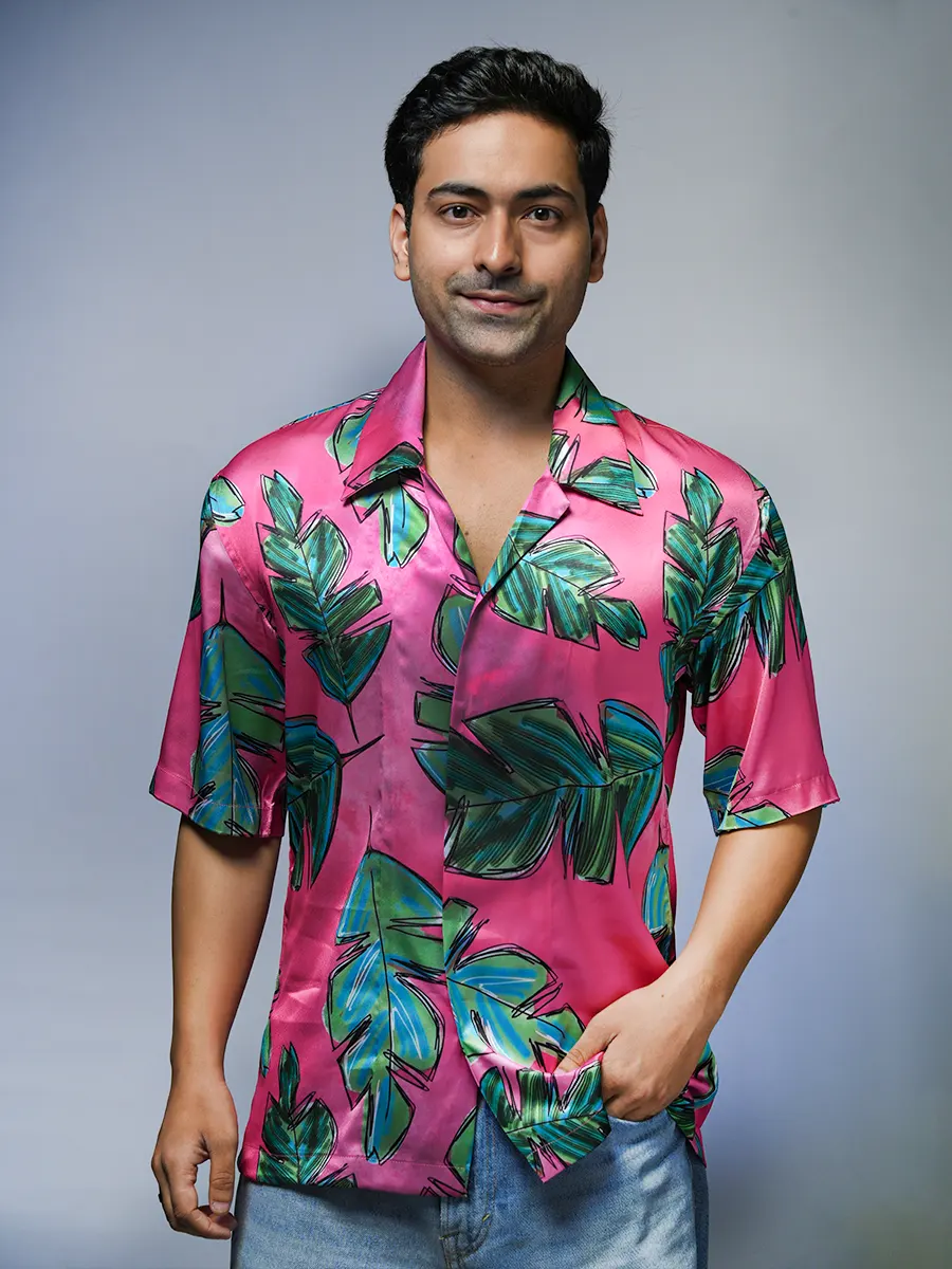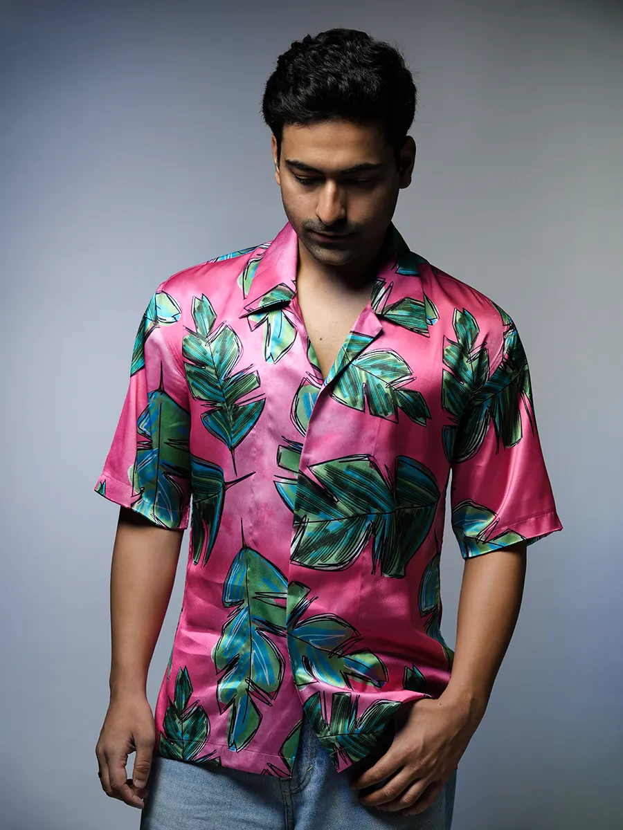 Stylish Pink Leaf Printed Half Shirt for men