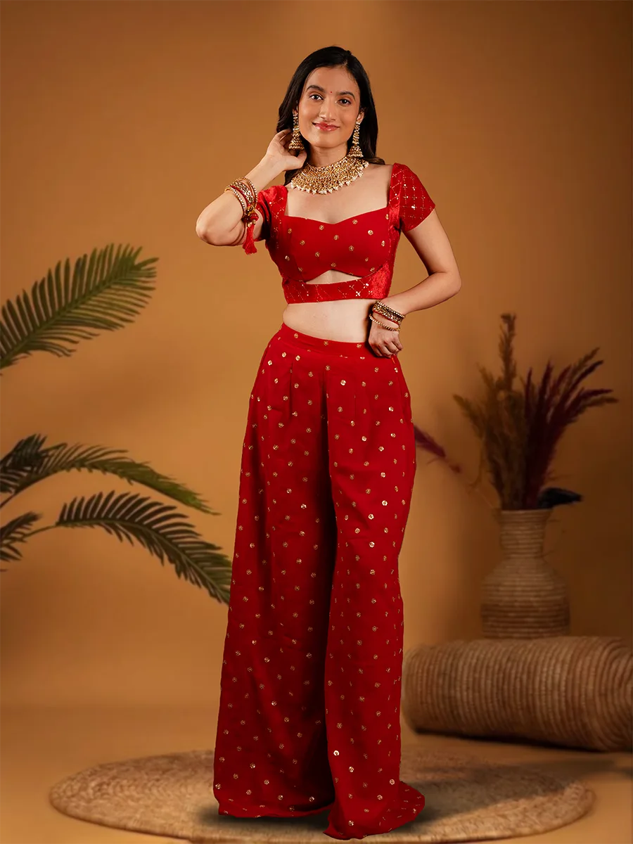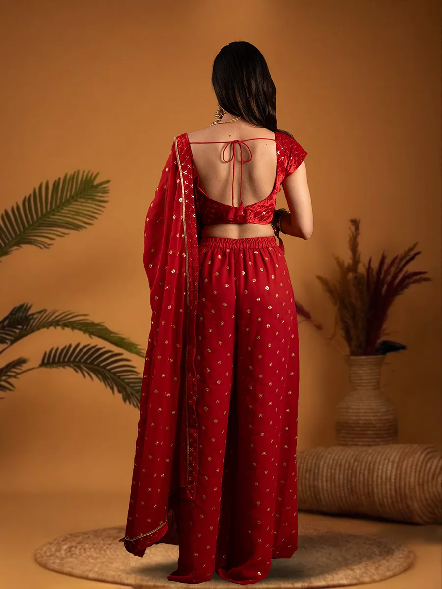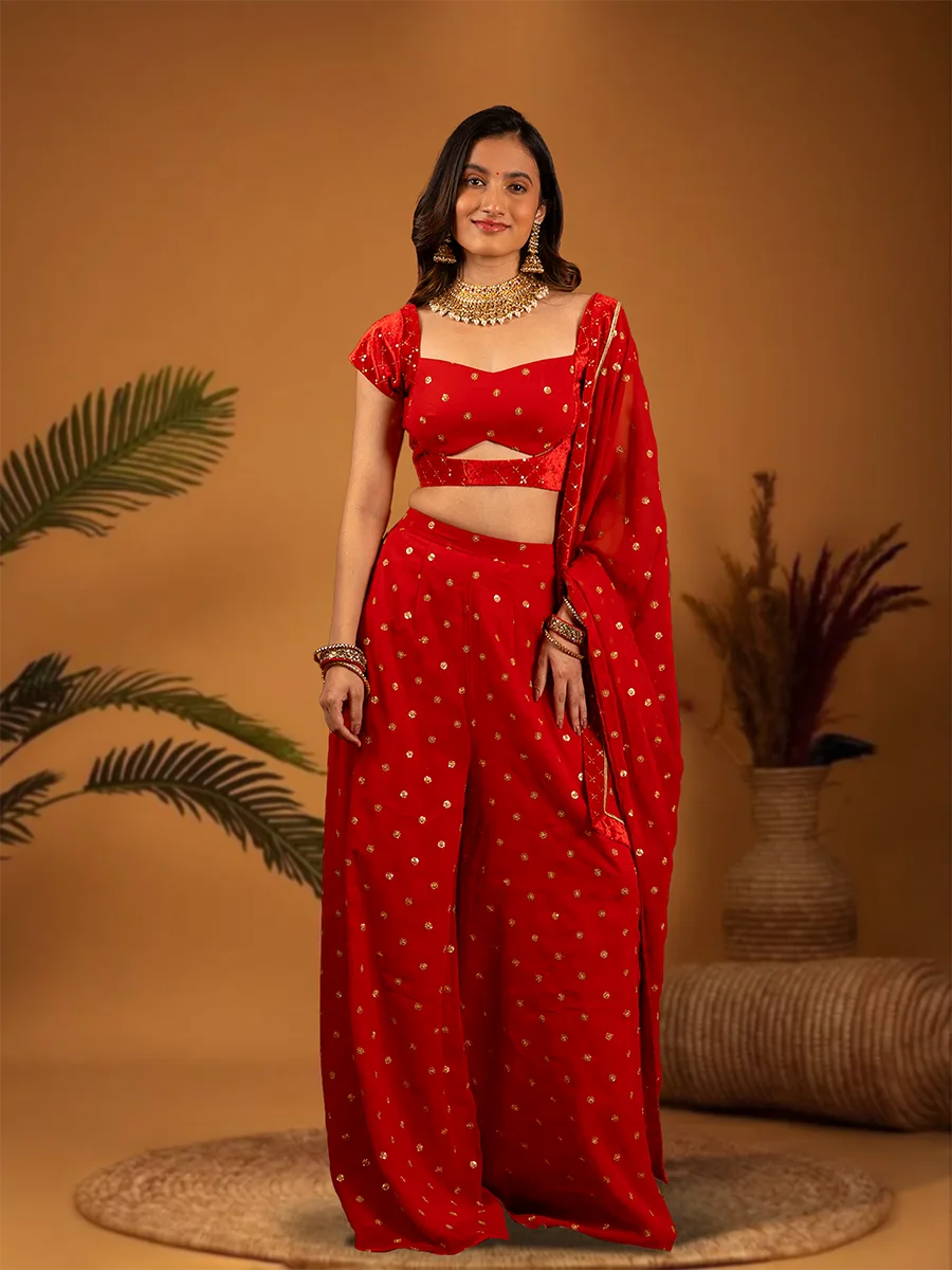 Red Crop Top with Sharara and Dupatta