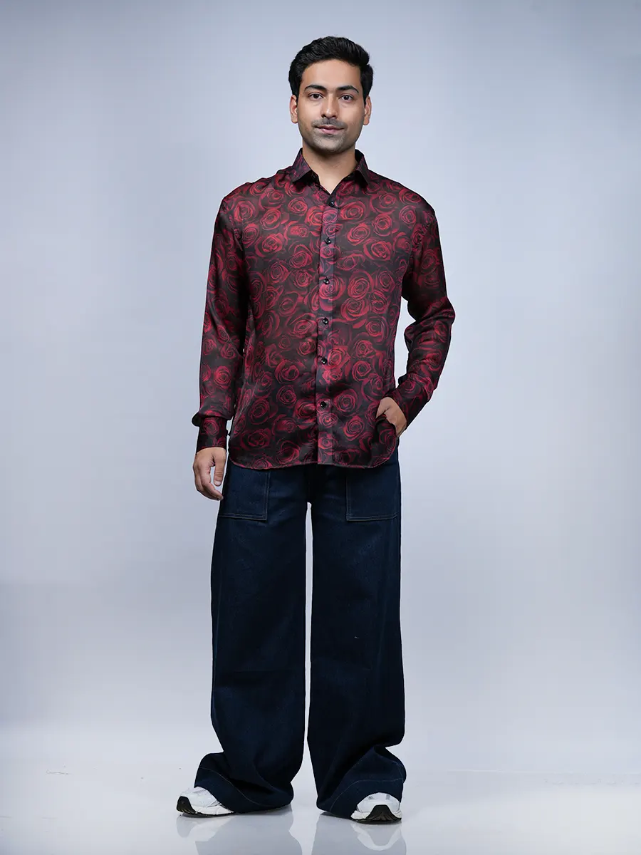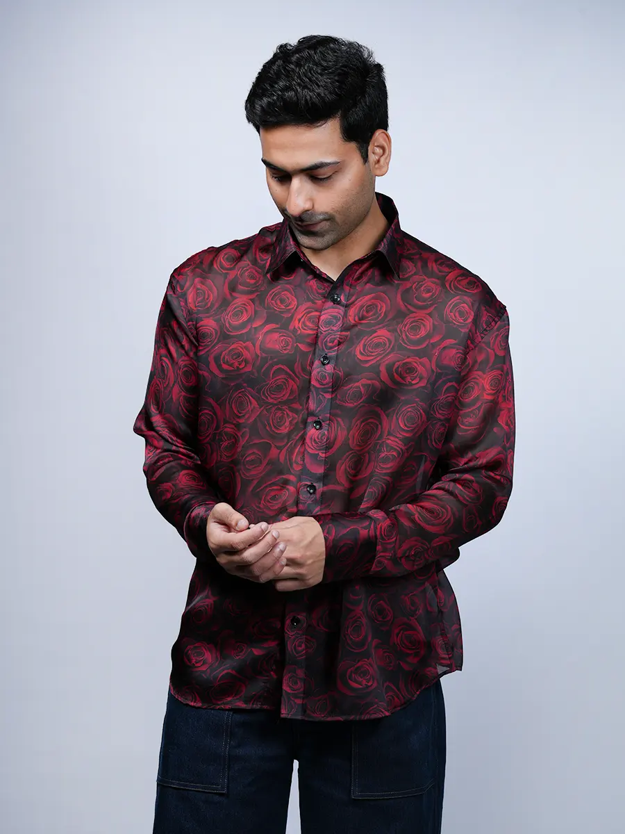 Elegant Red Rose Print Shirt for Men